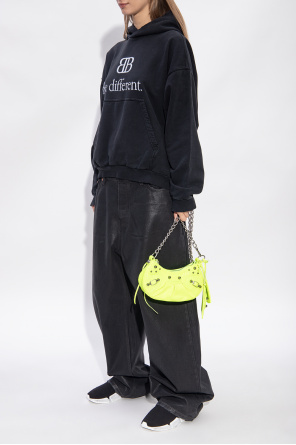 Black ‘Speed 2.0 graffiti’ high-top sock sneakers with a vintage effect from Balenciaga. Crafted from recycled fabric, this slip-on pair features a white sole with No Memory technology and logo print.