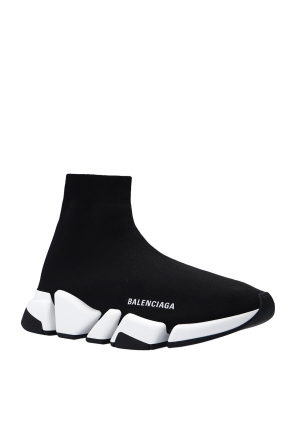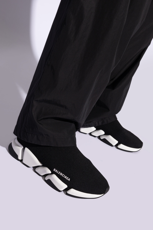 Balenciaga的黑色Speed 2.0 LT运动鞋。袜饰编织鞋帮。饰有白色logo。黑白橡胶鞋底。