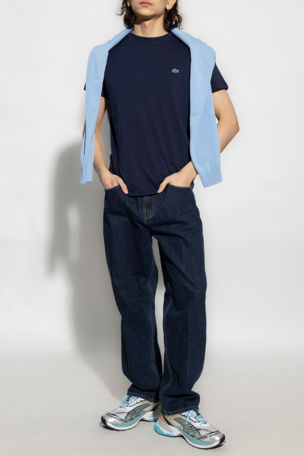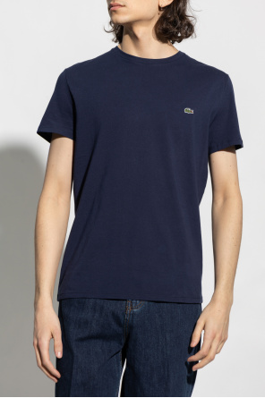 Lacoste的海军蓝色圆领T恤。采用秘鲁棉制成。弹性衣领、短袖。附标志贴片。