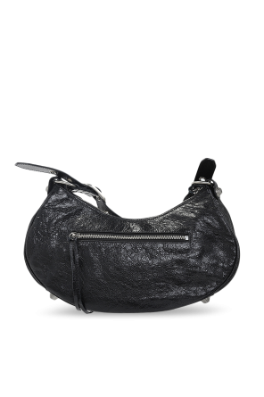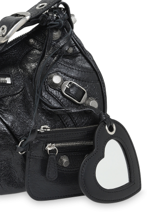 Balenciaga的黑色Arena拉链单肩包,采用纹理羔羊皮制成,流苏吊饰,饰以金属铆钉,配有拉链后袋。可调肩带。附有可拆卸小包与小镜子。黑色棉质内衬。内有一个主要分层与一个拉链口袋。做旧银色金属配件。