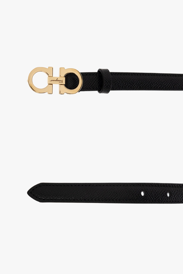 Salvatore Ferragamo的黑色腰带,金色金属logo搭扣。由皮革制成。