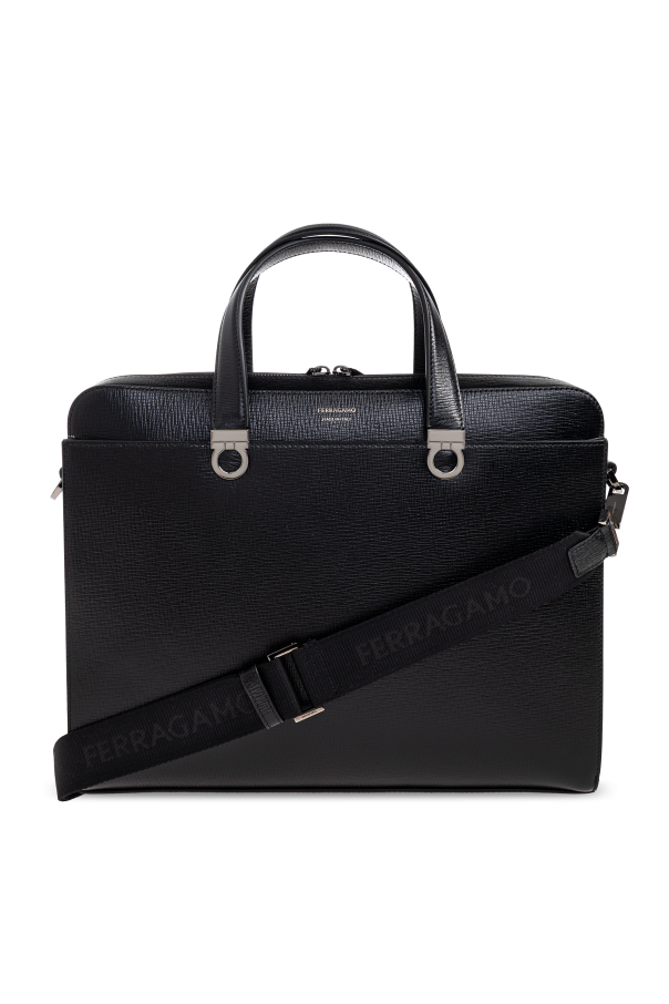 FERRAGAMO 黑色 带有logo的皮革公文包
