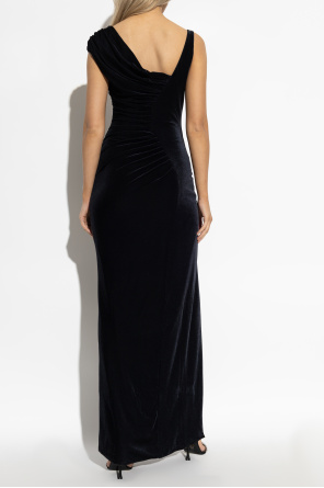 > Versace 黑色 天鹅绒褶皱连衣裙