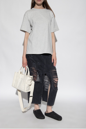 Black and grey ‘Zermatt Rivet’ slides from Birkenstock. This pair has a standard width upper crafted from felt, lamb fur lining, embossed logo on the side, anatomically shaped cork-latex footbed and black rubber sole.