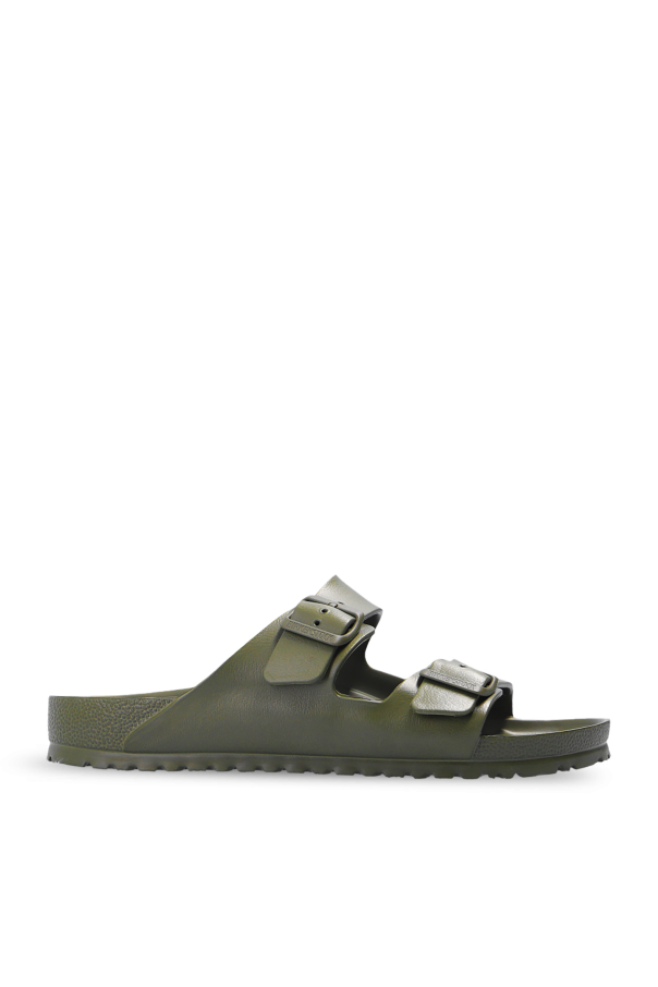 Birkenstock的深绿色调Arizona EVA拖鞋。EVA泡沫质。饰带含深绿色logo装饰搭扣。深绿色鞋底。