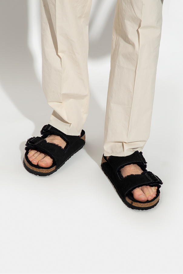 Birkenstock 黑色 Arizona Shearling拖鞋