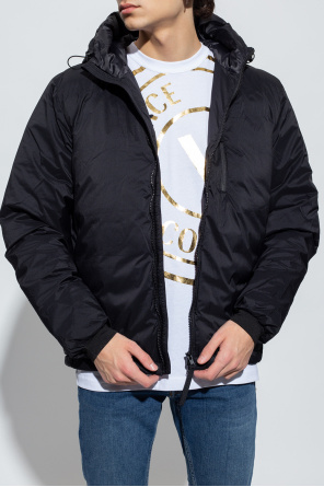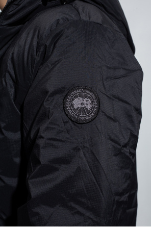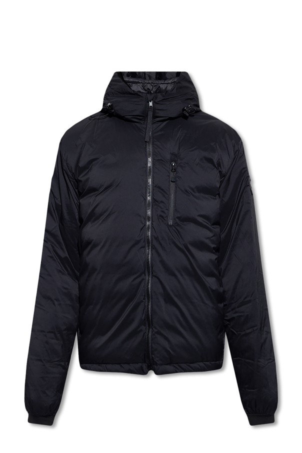 Black down jacket with a drawstring hood from Canada Goose. Embellished with a branded sleeve patch, this style features a two-way zipper, three zipped pockets and an elasticated bottom hem and cuffs. Temperature rating: 0°C to -15°C.