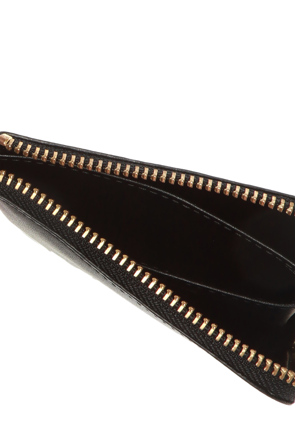 Comme des Garçons的黑色真皮拉链钱包,饰以白色印花标识,配有三个内置分层。