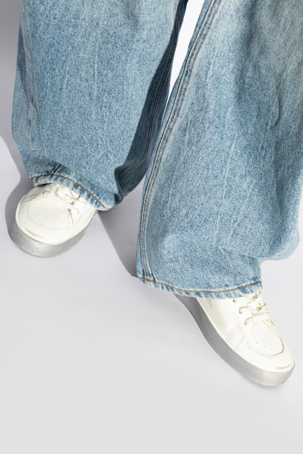 Golden Goose的白色调Stardan运动鞋。皮革质。附系带。黑色调橡胶鞋底。含银色调装饰元素。