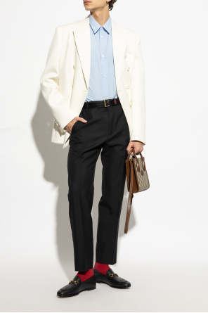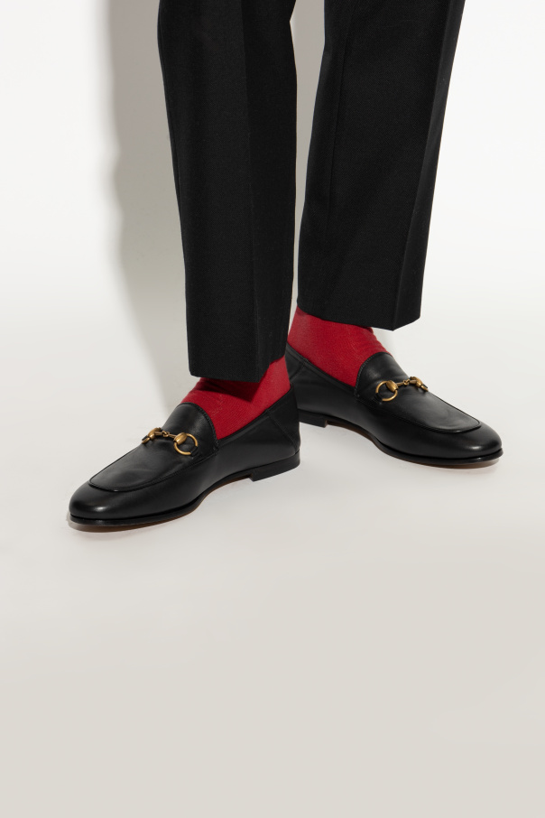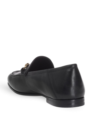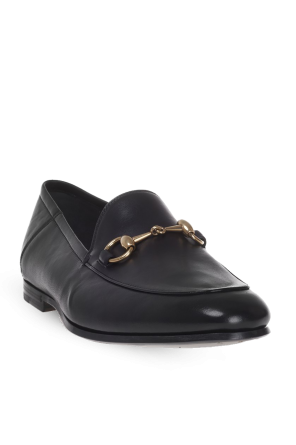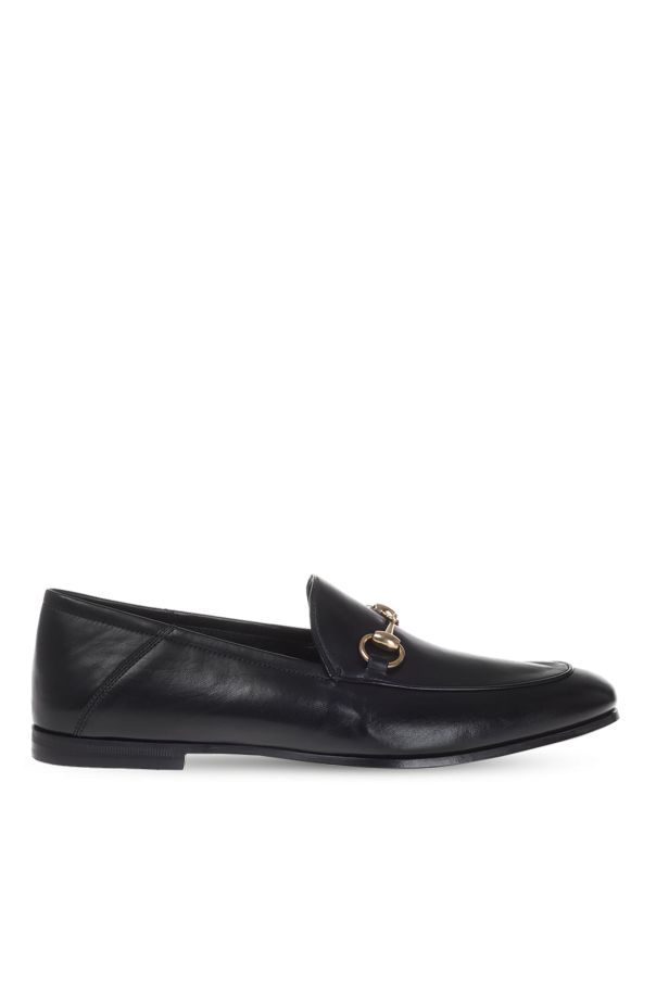 古驰 (Gucci)黑色皮革休闲鞋。正面有标志性的金色金属马刺小细节装饰。