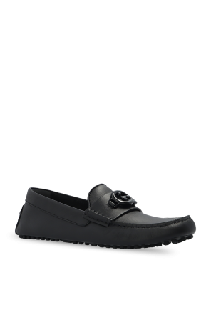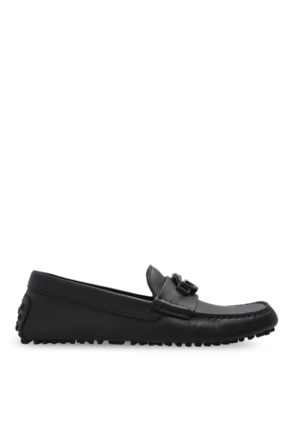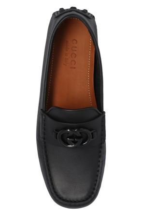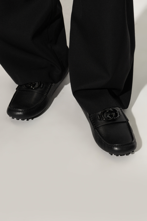 Gucci的黑色鹿皮鞋,采用皮革制成,黑色橡胶鞋底,正面饰有品牌标志性的Interlocking G贴饰。