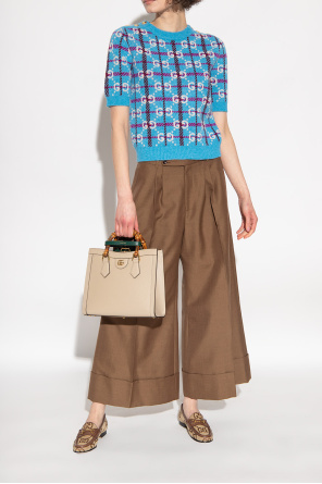 Gucci的米色和棕色乐福鞋,采用棕色皮革鞋底,饰有字母图案刺绣,正面饰有该品牌标志性的金色马衔扣五金配件。