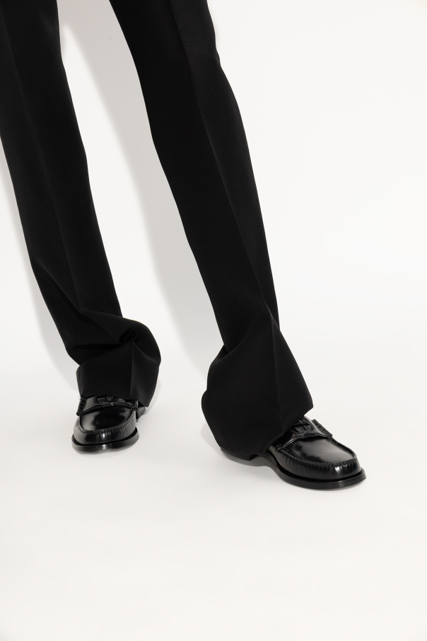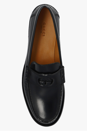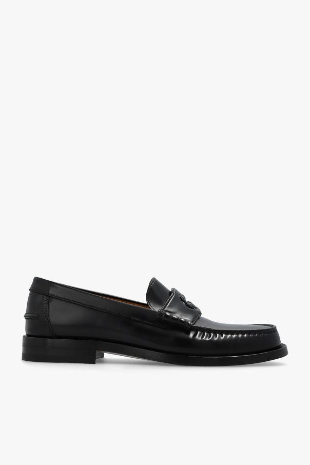 Gucci的黑色乐福鞋,采用皮革制成,黑色皮革鞋底,饰有镂空“GG”字母图案细节。