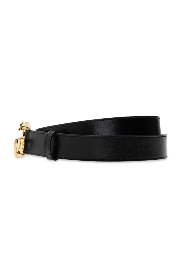 Gucci的黑色腰带。牛皮革制成。含金色调logo型搭扣。