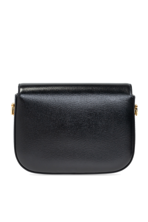 Gucci的黑色Horsebit 1955 Mini单肩包。皮革质。含装饰扣。饰有horsebit配件。两个可拆卸可调节肩带。绿色及红色调Web条纹。内部附一个隔层。金色调金属配件。
