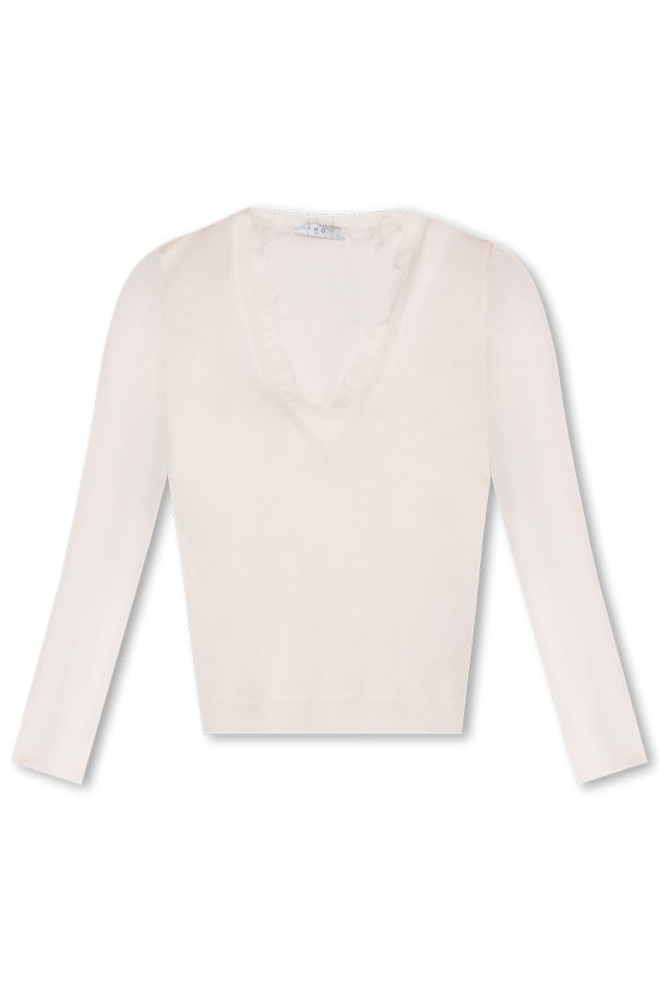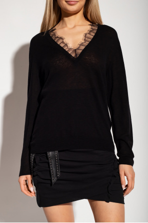 Iro的黑色Haby毛衣,采用羊绒和真丝混纺面料制成,V 领设计,蕾丝饰边,下摆和袖口饰有罗纹饰边。