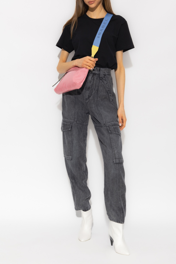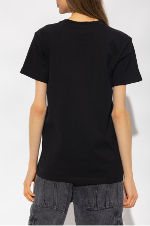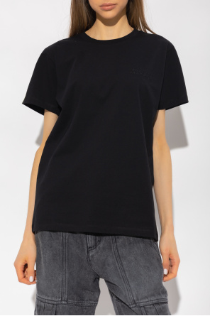 Isabel Marant的黑色'Vidal'棉质T恤。短袖设计,饰有黑色徽标刺绣和罗纹圆领。