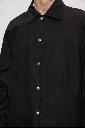 Jil Sander的黑色棉质衬衫。长袖设计,配有按扣和两个插袋。