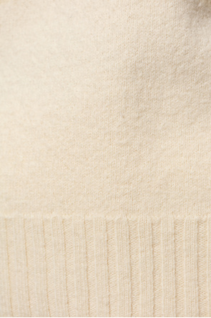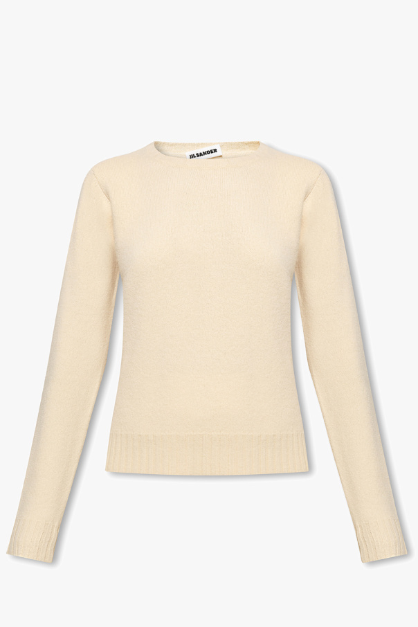 Jil Sander的奶油色羊毛质毛衣。圆领、下摆和袖口饰有罗纹饰边。