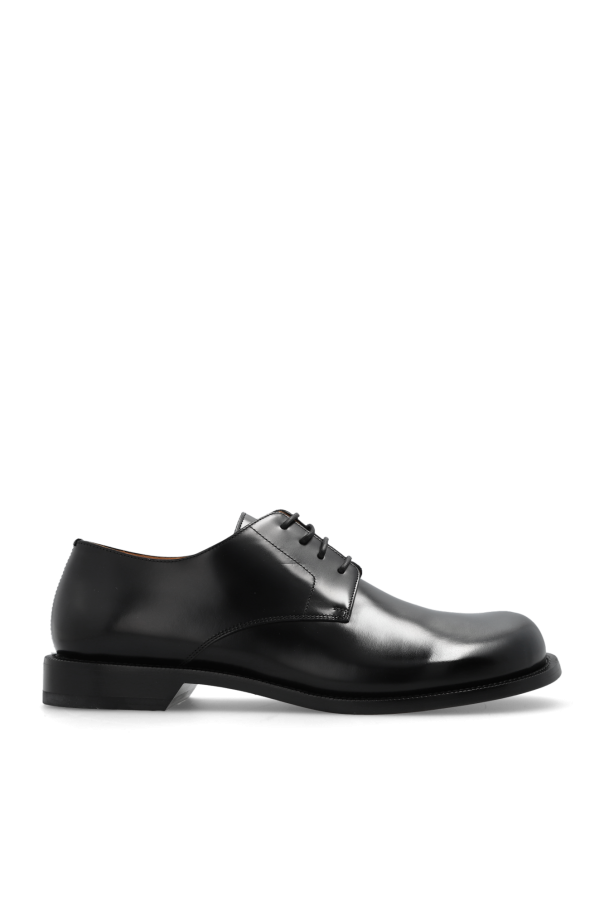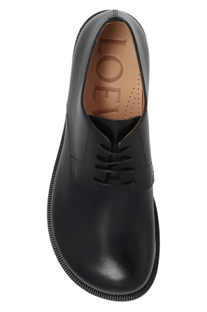 Black Derby shoes from Loewe. Made from leather, this lace-up model sits on a beige leather sole and features a round toe.