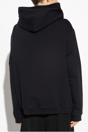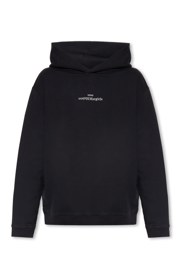 Maison Margiela的黑色连帽衫,采用棉质面料制成,正面饰有白色徽标刺绣,下摆和长袖饰有罗纹,背面饰有品牌标志性的白色四针。