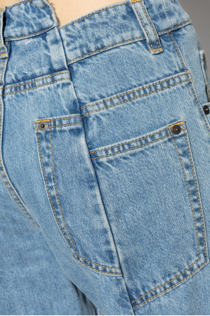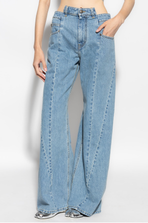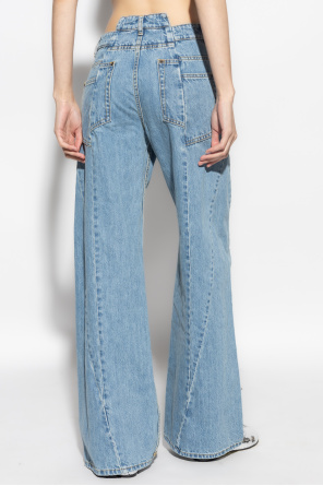 Blue jeans from Maison Margiela. This high-waisted pair features a zip and button fastening, multiple pockets, the brand’s signature white stitches and straight, wide legs with stitches.