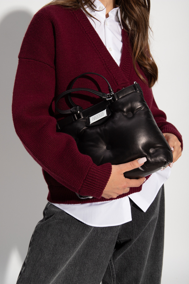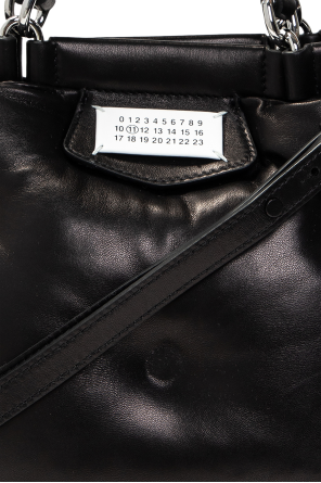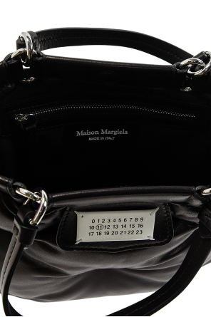 Maison Margiela的黑色调棉絮单肩包。皮革质。附磁性按扣。正面附黑白logo配件。两个半圆形手柄。可拆卸可调节饰带。银色调金属配件。内部附一个隔层及一个拉链袋。