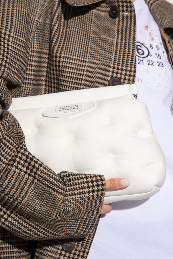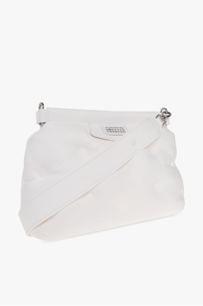 Maison Margiela的白色'Glam Slam'皮革绗缝单肩包。附磁性按扣、品牌标志性白色银色金属配件徽标贴片,一个内置隔层和一个拉链袋。