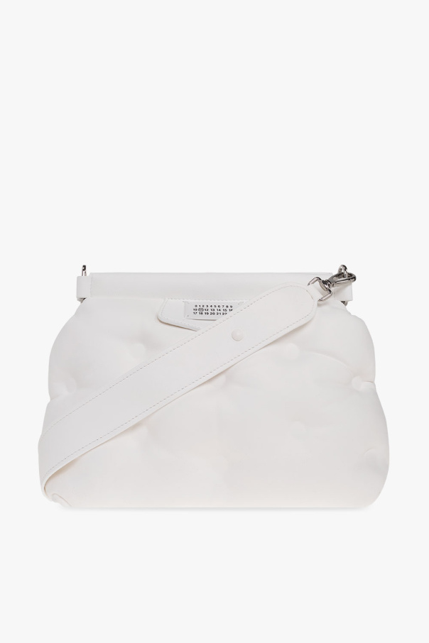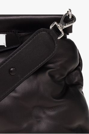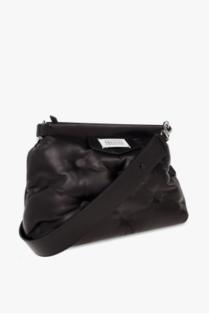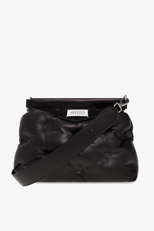 Maison Margiela的黑色'Glam Slam'皮革绗缝单肩包。附磁性按扣、品牌标志性白色银色金属配件徽标贴片,一个内置隔层和一个拉链袋。