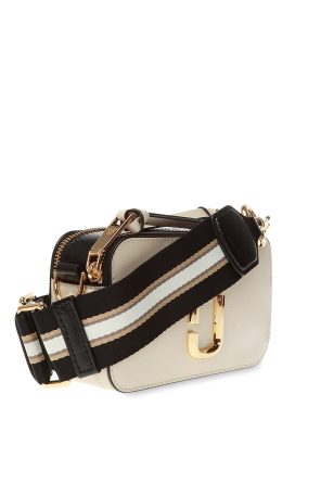 Marc Jacobs的黑色奶油色单肩包。牛皮革制成。附按扣。正面饰有金色调logo金属配件。可调节可拆卸肩带,附logo。内部附两个隔层。