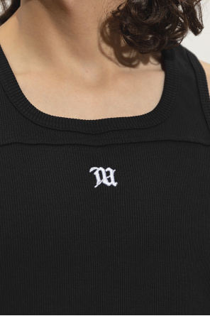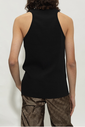 MISBHV 黑色罗纹无袖T恤。由棉制成。饰有白色刺绣徽标图案。圆领饰有贴边。