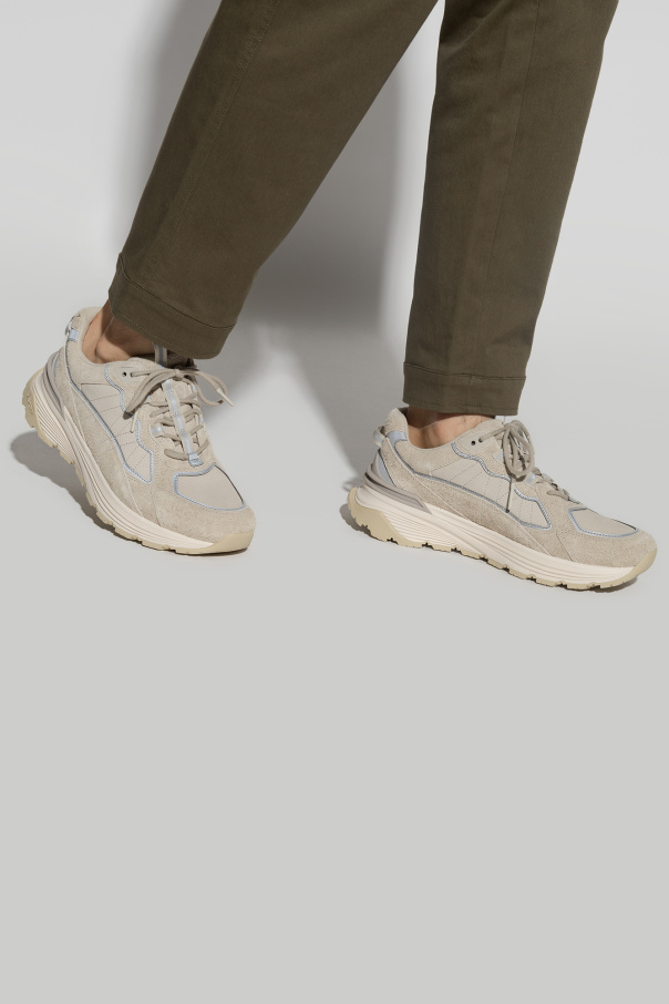 Light beige ‘Lite Runner’ sneakers from Moncler. Made of suede, this lace-up pair features a logo, reflective details, OrthoLite® insole, EVA midsole and Vibram® outsole in light beige rubber.