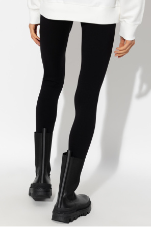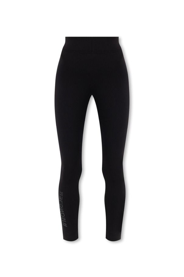 Black leggings from Moncler Grenoble, the ‘Moncler Grenoble Day-Namic’ collection. This pair features an elastic waistband, a zip pocket on the back, logo print and tapered legs.