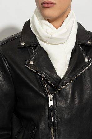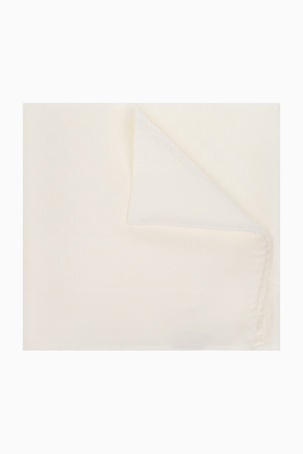 Moschino的白色围巾。由丝绸材质制成,饰有交织字母图案。