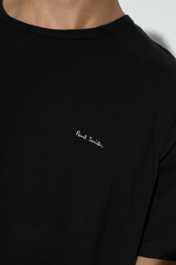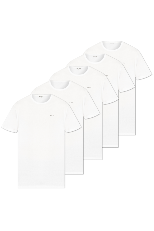Paul Smith 黑色棉质五件装 T 恤。正面饰有白色印花徽标。圆领。短袖。
