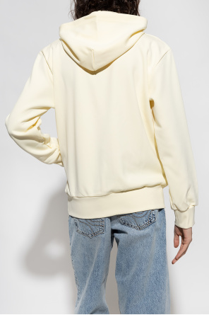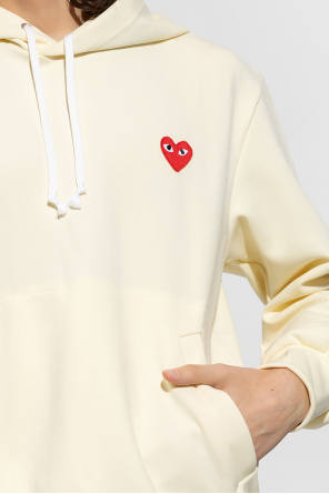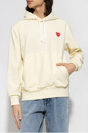 Comme Des Garcons Play 浅黄色运动衫,带可调节抽绳兜帽。附红色标志形贴片。附两个插袋、长袖、松紧下摆和袖口。