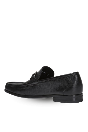 萨瓦托·菲拉格慕 (Salvatore Ferragamo) (Salvatore Ferragamo) 黑色粒面皮革休闲鞋。正面带有装饰性和标志性的仿古银色logo扣。黑色橡胶鞋底。