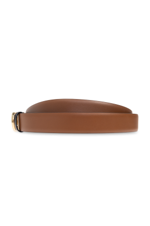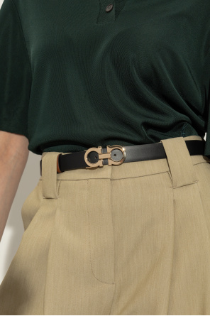 Salvatore Ferragamo 棕色和黑色双面腰带。 这款款式采用小牛皮制成,采用金色镌刻徽标搭扣固定。