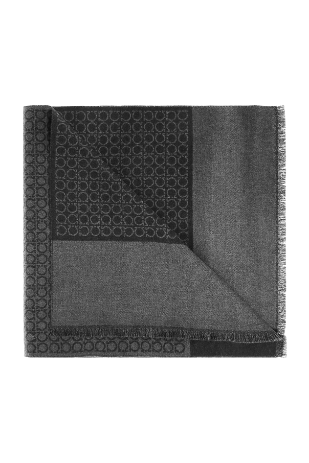 Salvatore Ferragamo的灰色logo羊毛围巾。 毛边。