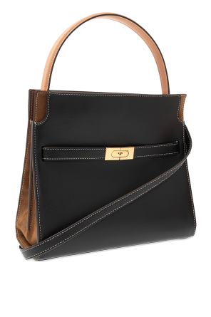 Tory Burch的棕色真皮Lee Radziwill单肩包,logo压花饰扣开合。弧状提手,可拆卸肩带。内有三个分层、一个拉链口袋。内衬采用织物和皮质制成。金色金属配件。附有吊牌。