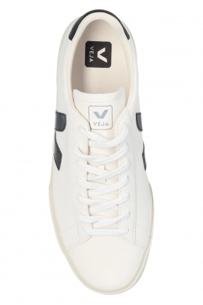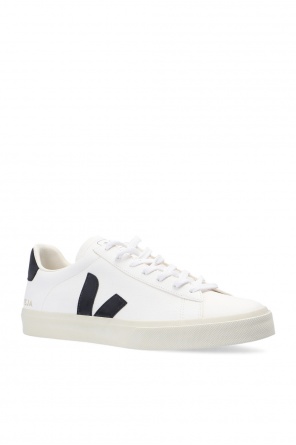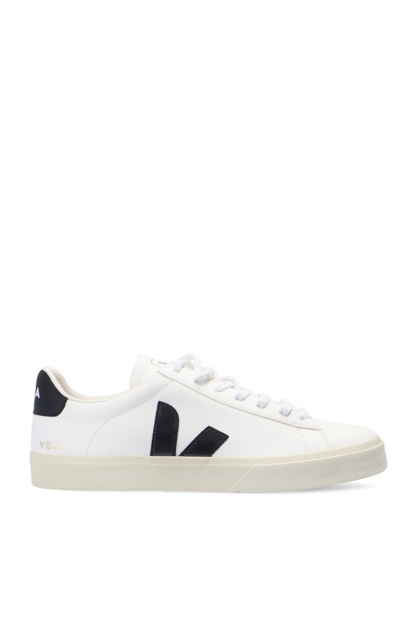 Veja的白色Campo运动鞋。无氯皮革质。附系带。黑色橡胶logo贴片。奶油色橡胶鞋底。