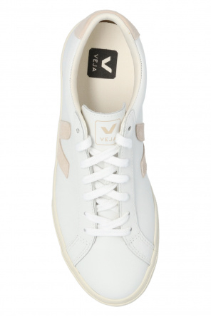 White ‘Esplar Logo’ sneakers from Veja. Made from leather, this lace-up model features a logo printed on the tongue and organic cotton laces. The mesh inner lining made from recycled materials was developed to acquire a better resistance to friction. The organic-sourced and recycled insole is made from sugar cane, Amazon rubber, organic cotton and recycled EVA foam. It is set on a cream rubber sole made of organic and recycled materials.