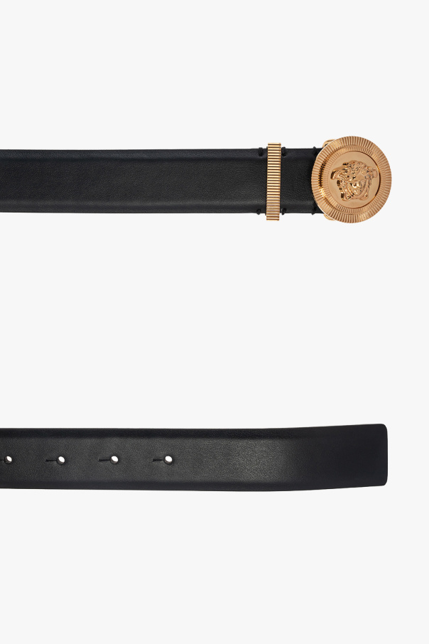 Versace的黑色腰带,采用小牛皮制成,饰有装饰性金色搭扣,饰有品牌标志性的美杜莎。