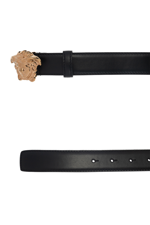Versace的黑色腰带,采用小牛皮制成,饰有装饰性金色搭扣,饰有品牌标志性的美杜莎。