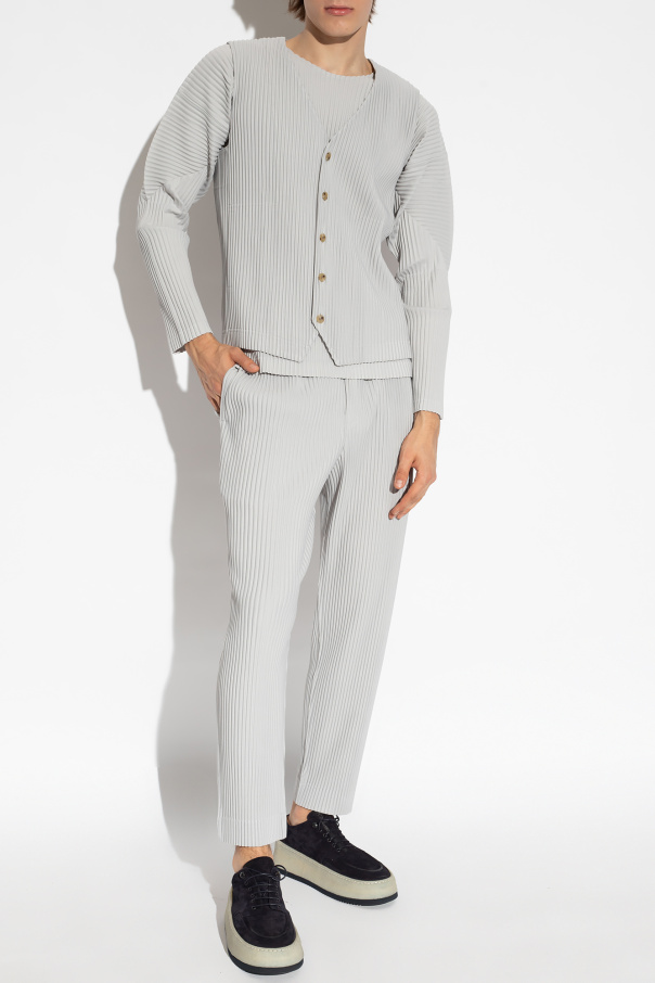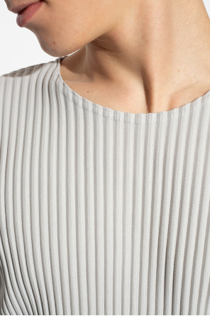 Issey Miyake Homme Plisse的灰色褶皱T恤,圆领设计,采用再生材料制成,配有长袖。