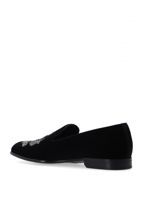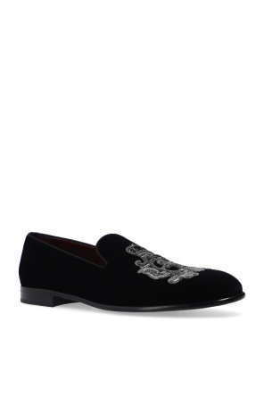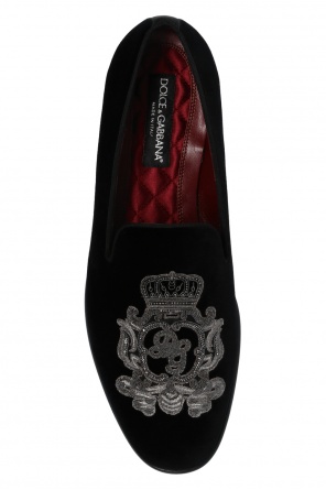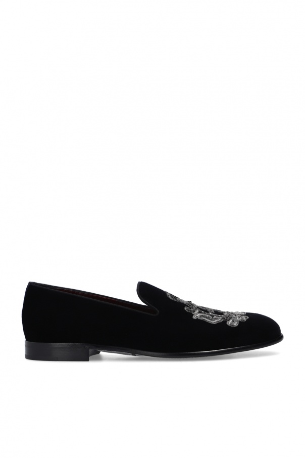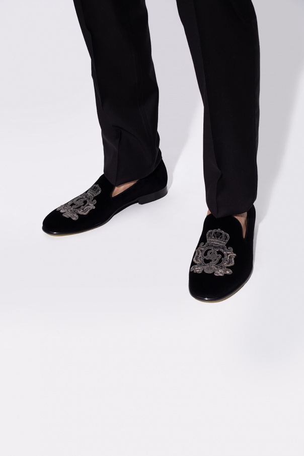 Dolce & Gabbana的黑色Leonardo乐福鞋。天鹅绒质。饰有灰色及银色调图案。栗色及黑色皮革鞋底。