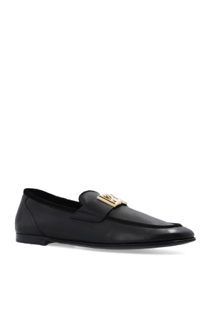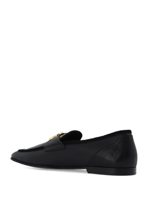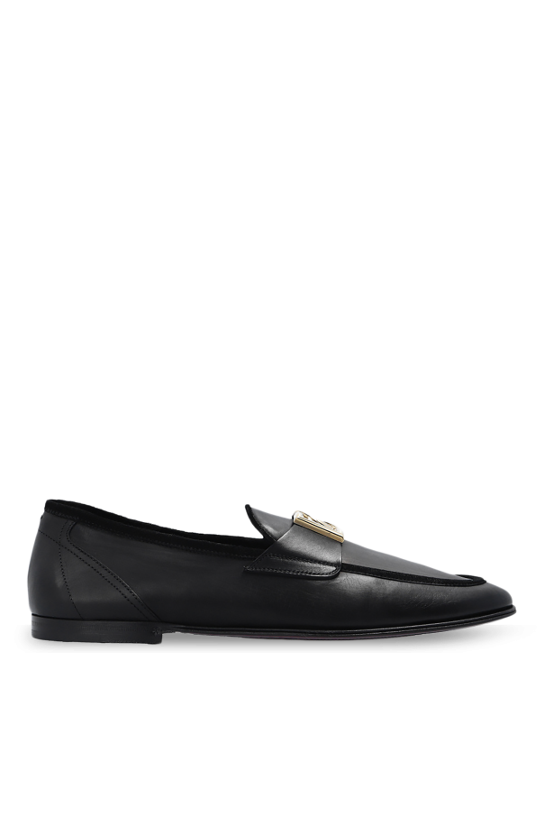 Dolce & Gabbana的黑色皮革质乐福鞋。附金色金属徽标贴花。栗色和黑色皮革鞋底。
