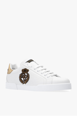 Dolce & Gabbana的白色及金色Portofino运动鞋。牛皮革质。含系带。附logo样式。黑色橡胶鞋底。