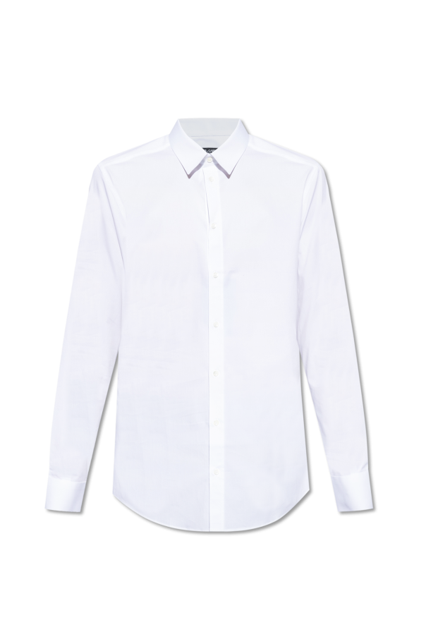 Dolce & Gabbana的经典黑色衬衫,采用棉质面料制成,纽扣开合,长袖配有纽扣袖口。