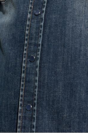 Dolce & Gabbana的深蓝色牛仔衬衫。附标志贴片。设计细节:按扣、两个按扣翻盖胸袋、仿旧细节。长袖,按扣袖口。